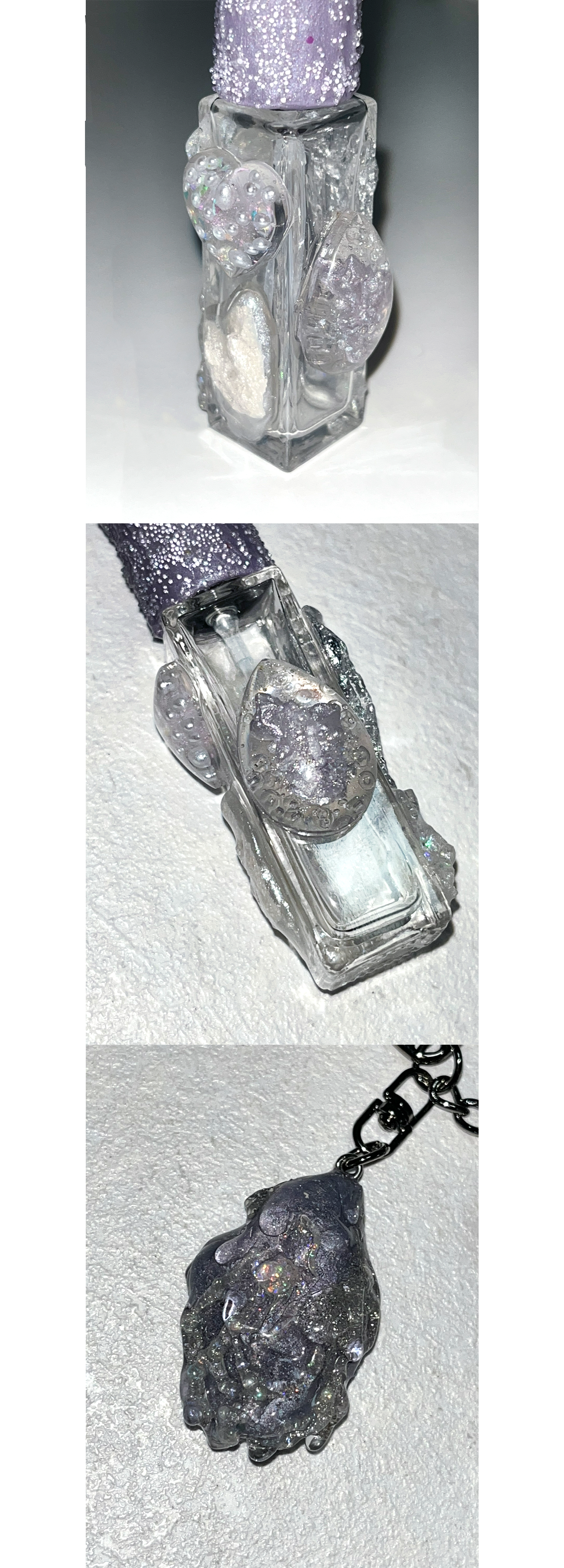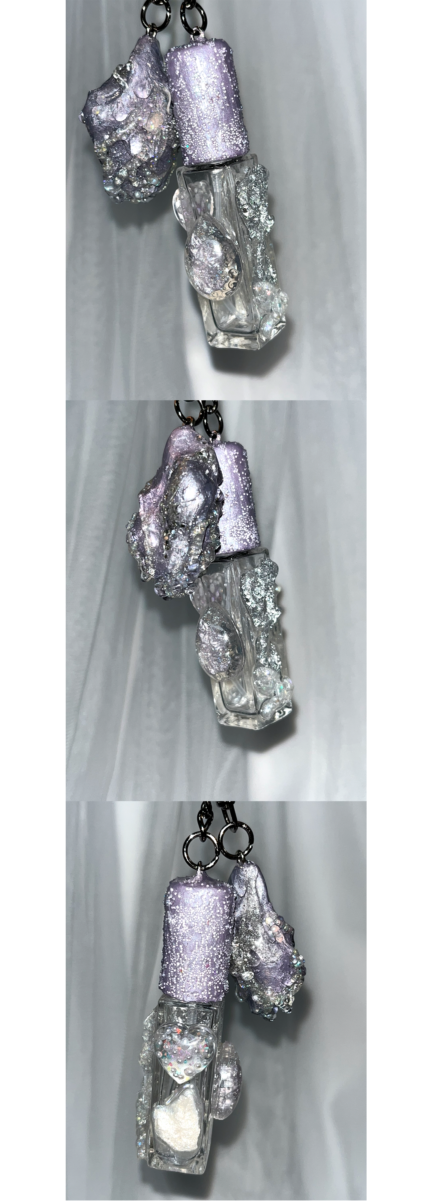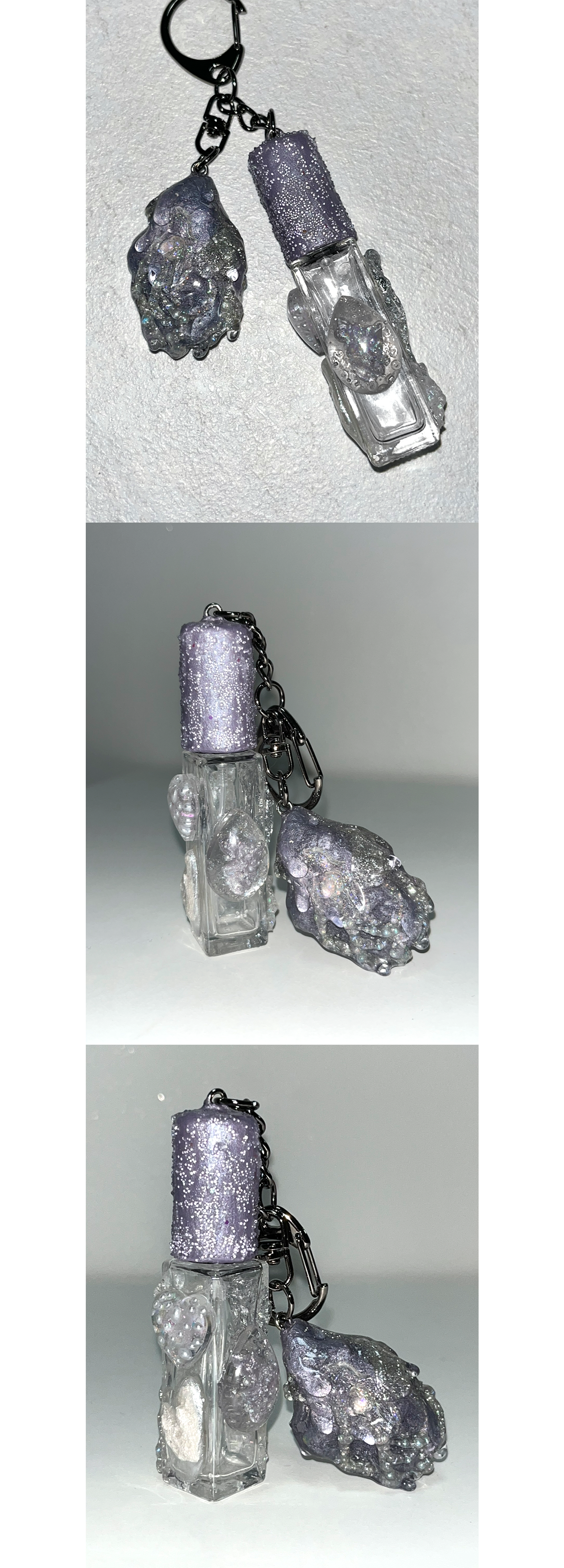 스톤 오브제가 함께 달린 키링형 퍼퓸케이스 입니다.