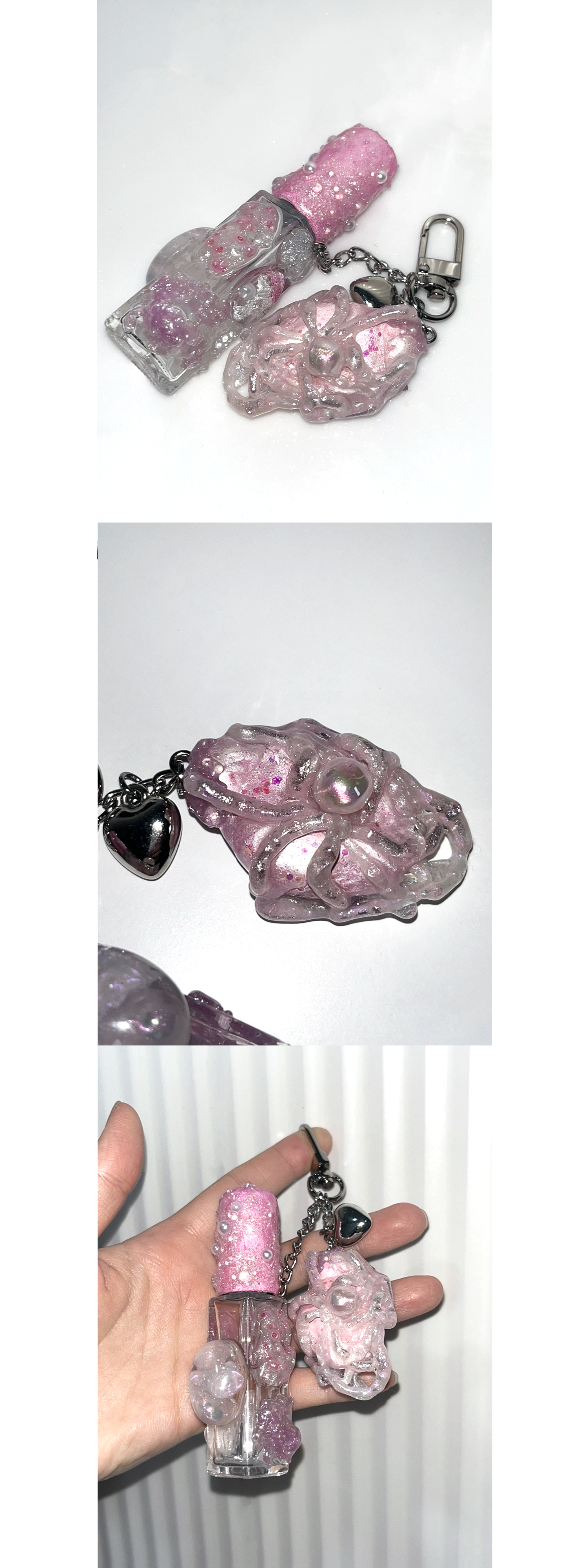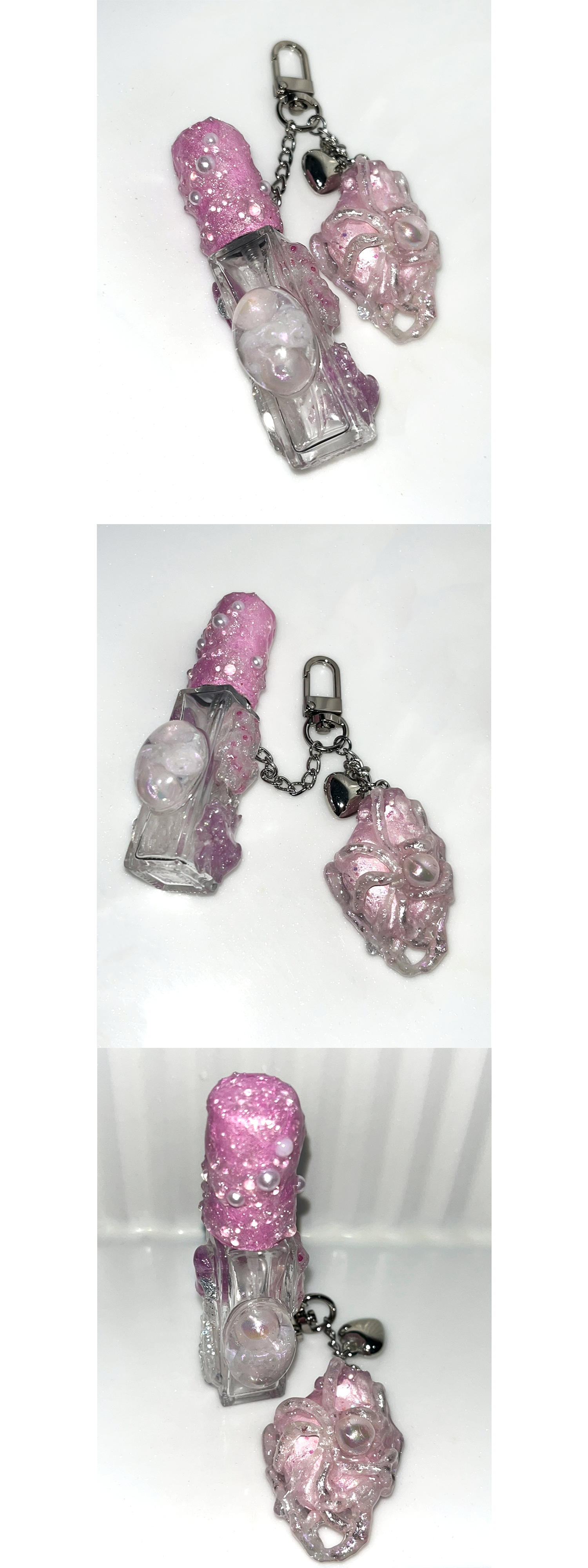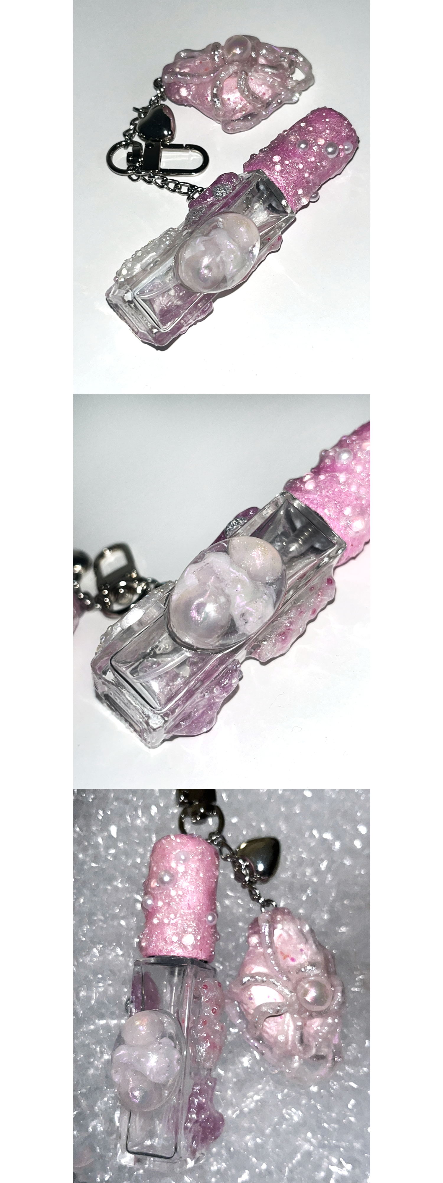 스톤 오브제가 함께 달린 키링형 퍼퓸케이스 입니다.