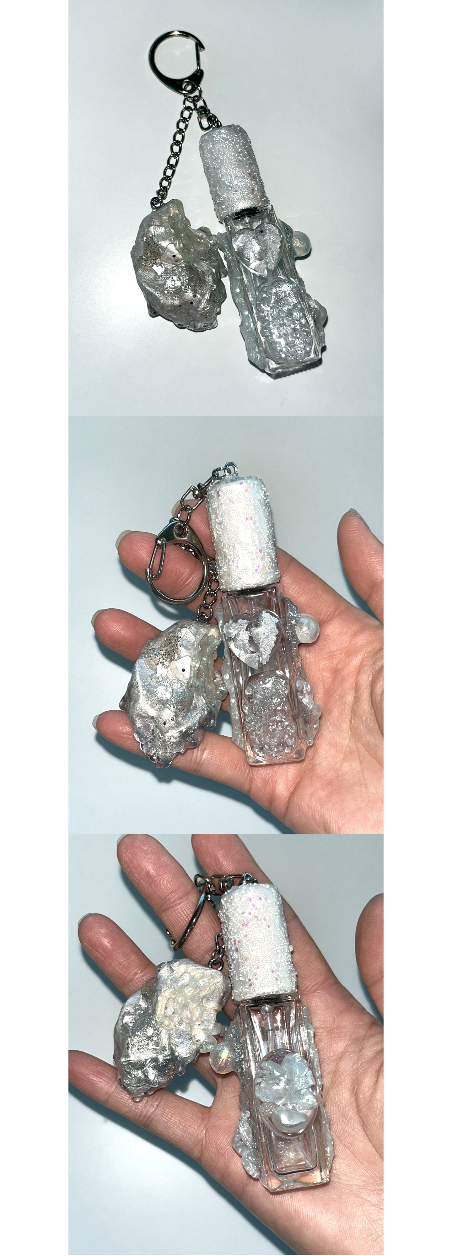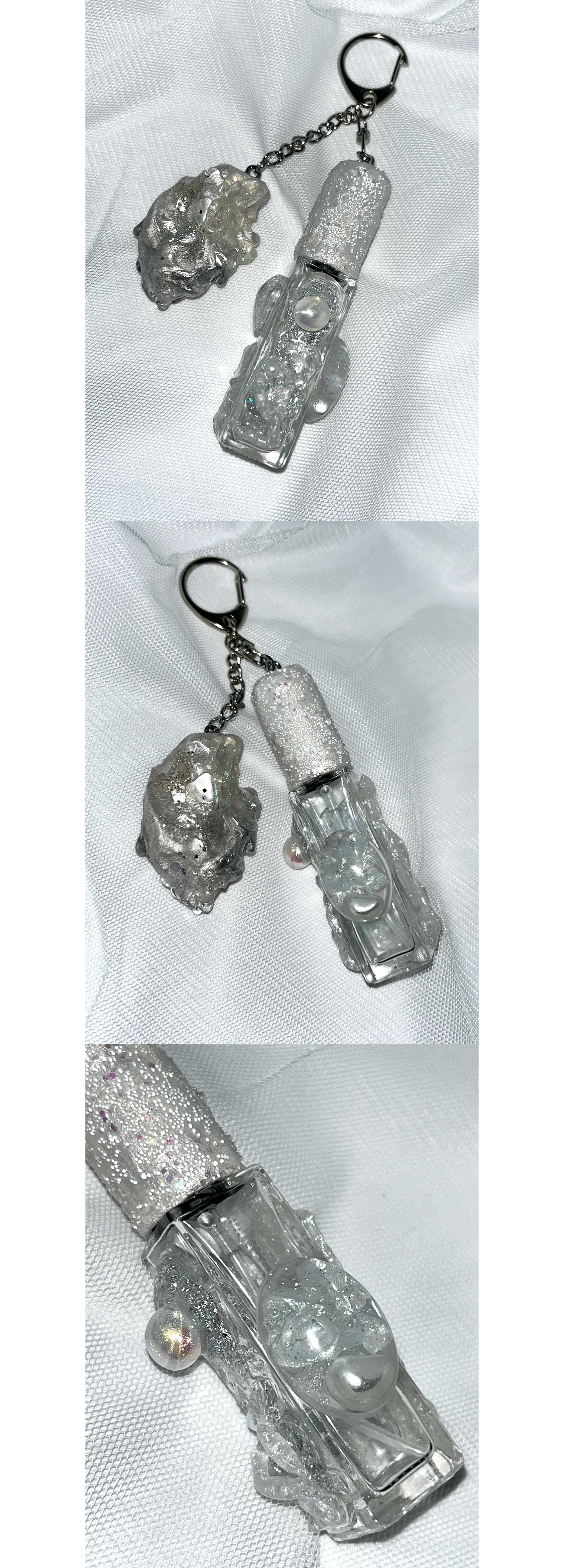 스톤 오브제가 함께 달린 키링형 퍼퓸케이스 입니다.