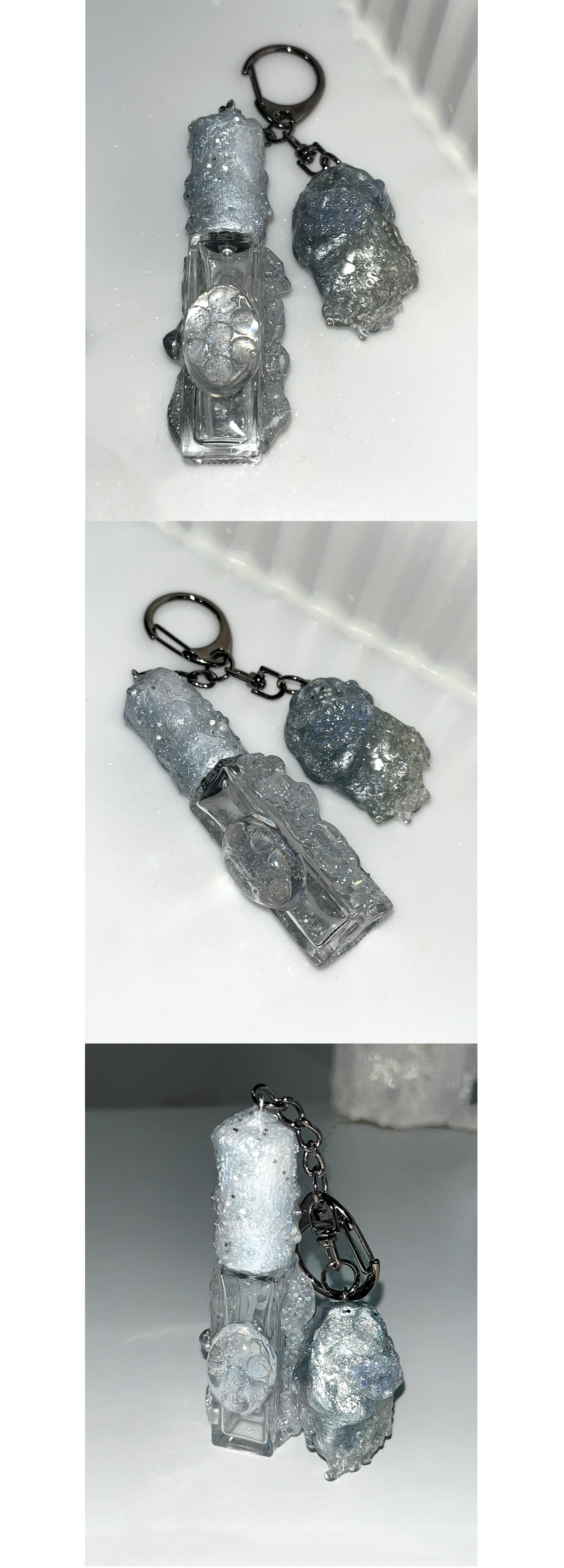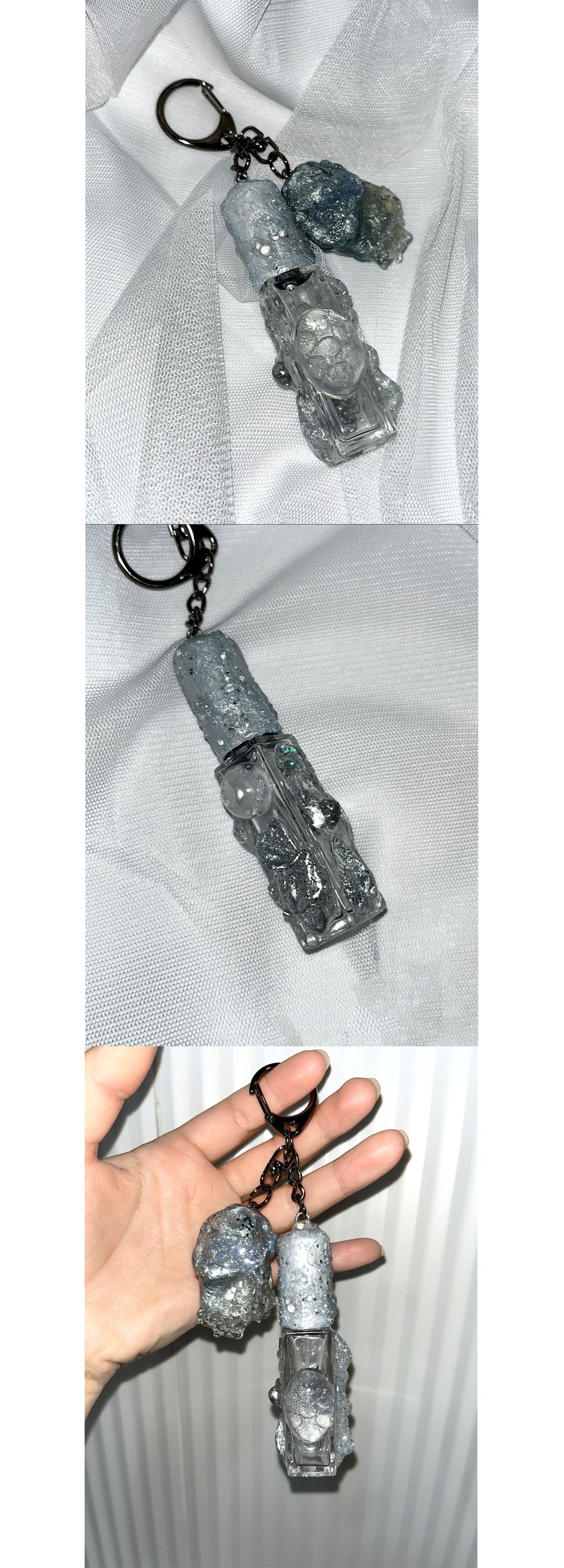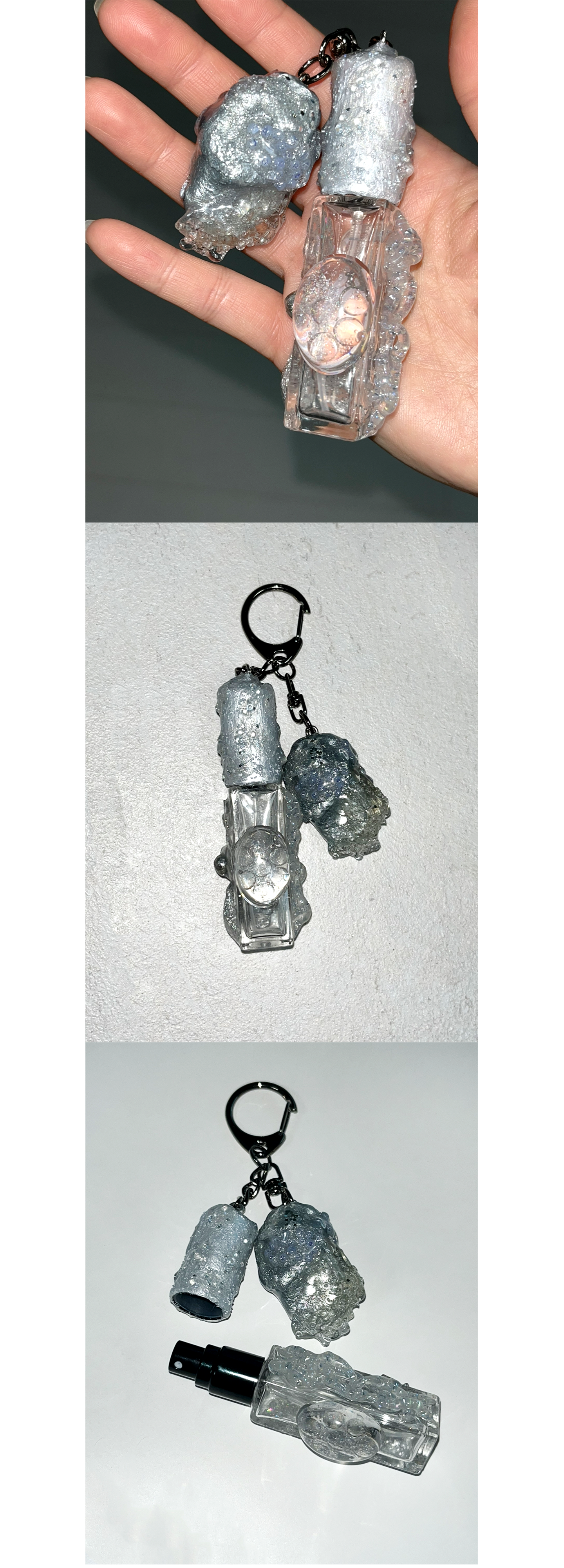 스톤 오브제가 함께 달린 키링형 퍼퓸케이스 입니다.